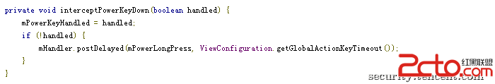 如图2,在interceptPowerKeyDown中,判断参数handled,如果为false就延时500ms触发一个Runnable,这里主要负责检测长按事件。