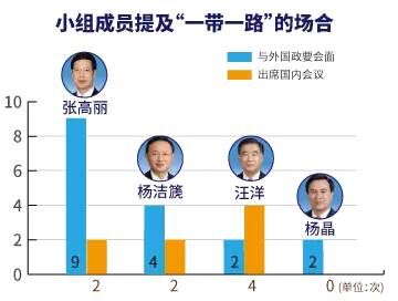 据统计,小组成员在公开场合提及“一带一路”的次数是25次,张高丽占11次。
