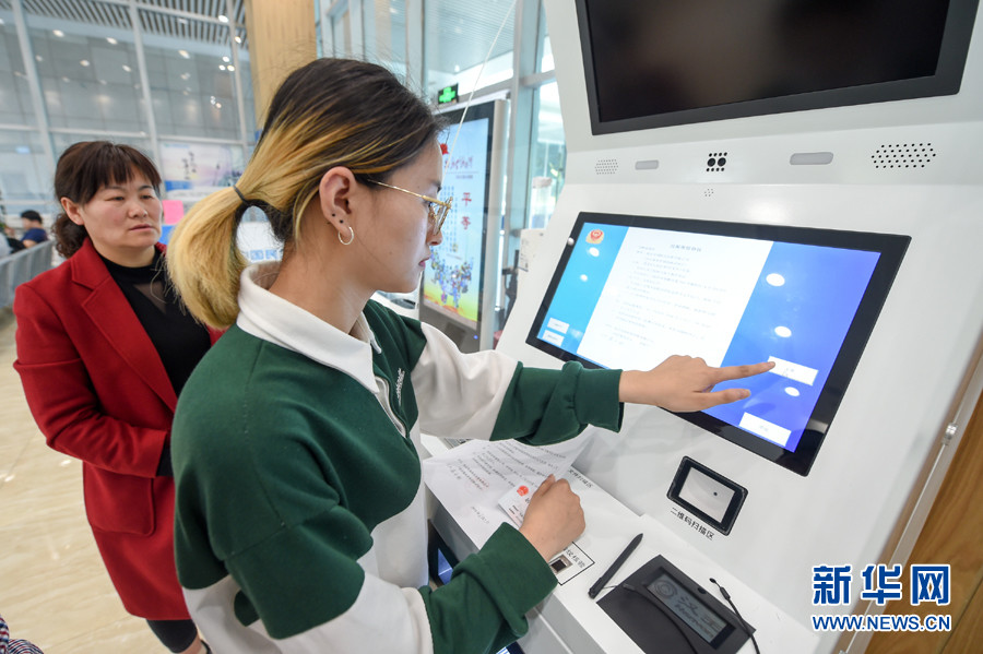 在南京市栖霞区商事登记服务大厅,市民用自动终端机办理业务(3月29日摄)