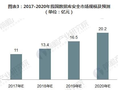 对于企业用户来说,数据库是其具备战略意义的重要资产,因此对于其的防护就具有关键意义。从已经发生的信息安全事件来看,数据库往往遭到网络攻击者的重点关注,将数据库直接拖走的恶性行为频发。数据库安全目前已经受到了行业用户的高度重视,我国市场规模在2015年达到7.6亿元,测算2017年约11.0亿元。前瞻认为,数据库防护产品线将保持高增速,至2020年可达20.2亿元规模。